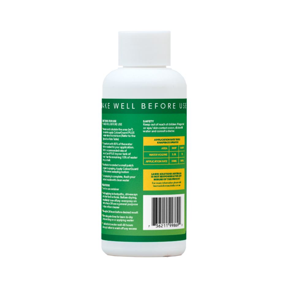 ColourGuard PLUS is a liquid fertiliser and a natural grass pigment that instantly restores the colour of your lawn.