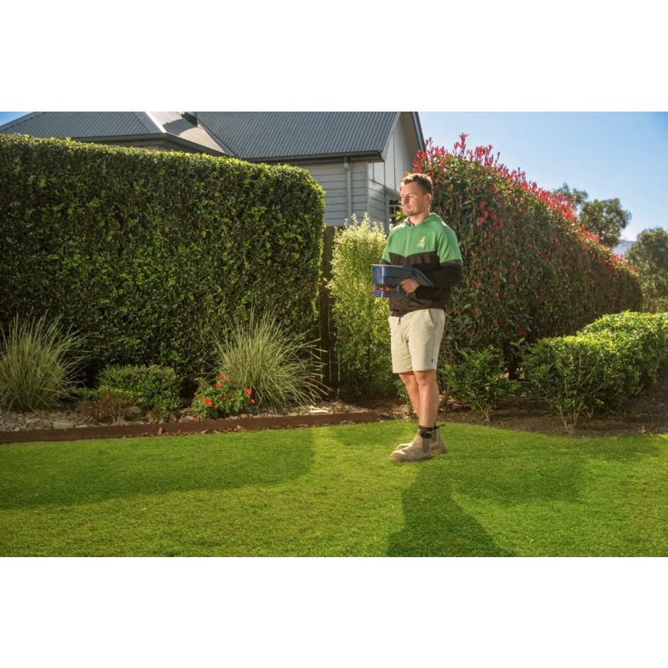 1 - Apply evenly over lawn surface using either a fertiliser spreader (use manufacturer’s settings) or apply by hand. If hand spreading, the average adult hand holds approximately 50g of this product