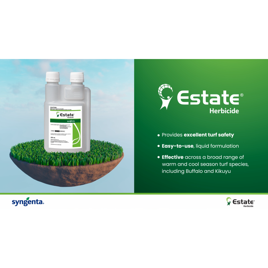 ESTATE® Herbicide is Syngenta’s new powerful combination of three active ingredients for effective broad-spectrum control of hard-to-kill weeds such as bindii and white clover. Effective across a broad range of warm and cool season turf species, including Buffalo and Kikuyu.