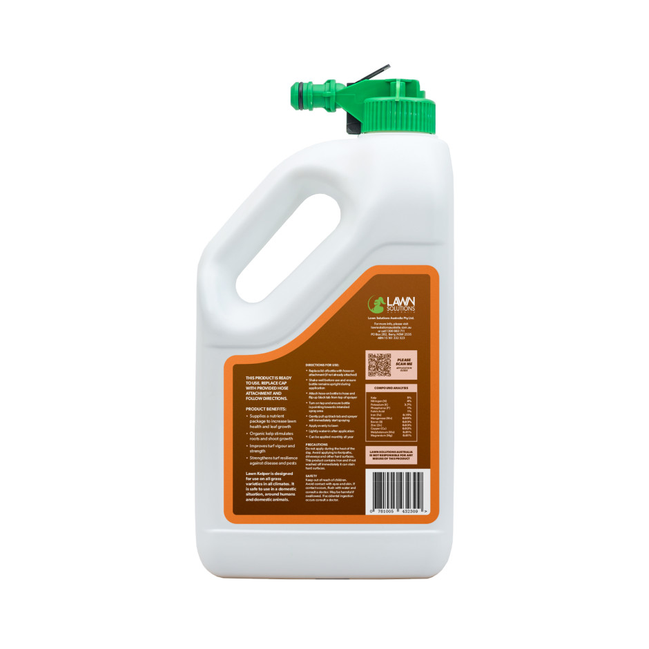 Lawn Kelper Liquid Hose-on spray is a balanced formulation with added Trace Elements, Seaweed Kelp and Fulvic Acid.