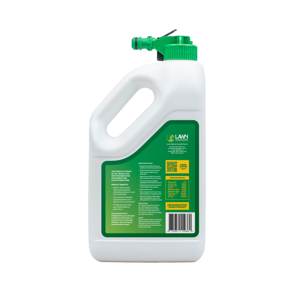 ColourGuard PLUS is a liquid fertiliser as well as a natural grass pigment that instantly restores the colour of your lawn.